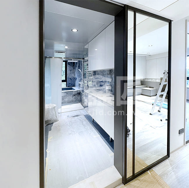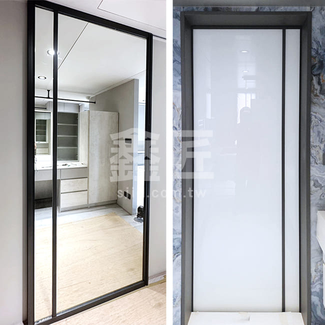 *圖中內材使用:單面無銅鏡+單面鑽石銀粉強化超白烤漆白玻璃/深灰色鋁框