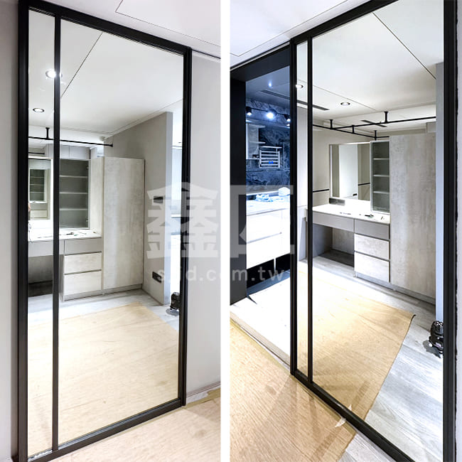 懸吊式雙面鋁框拉門(鏡面+玻璃)WSP369